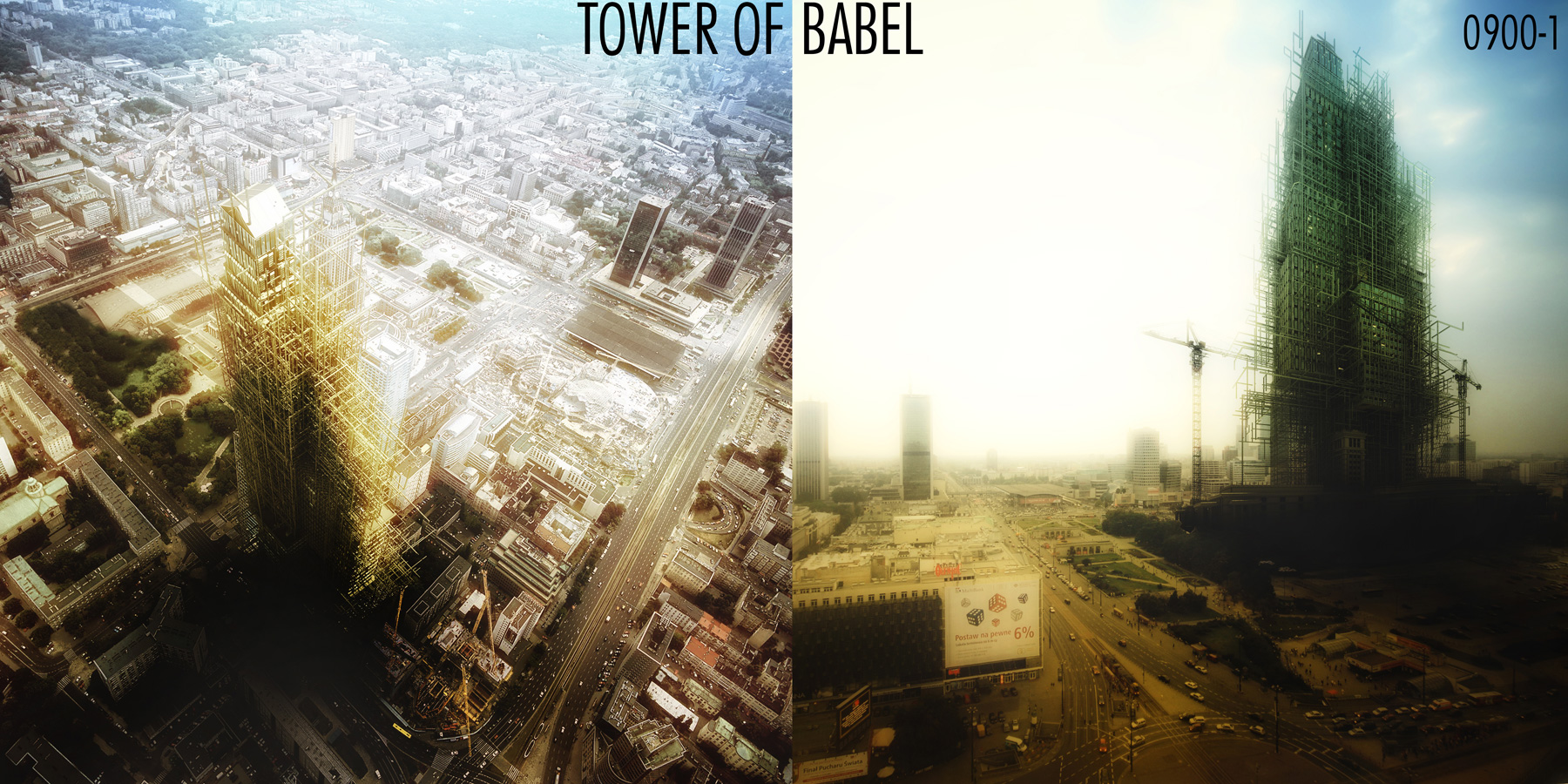 В первую очередь New Babel Tower является вариацией знаменитой советской высотки — Дворца культуры и науки (архитектор Лев Руднев). Это монументальное здание 1955 года на протяжении десятилетий оставалось самым высоким в Польше (237 м). Однако в 2020-м в Варшаве возведут небоскреб, высотой 310 метров.