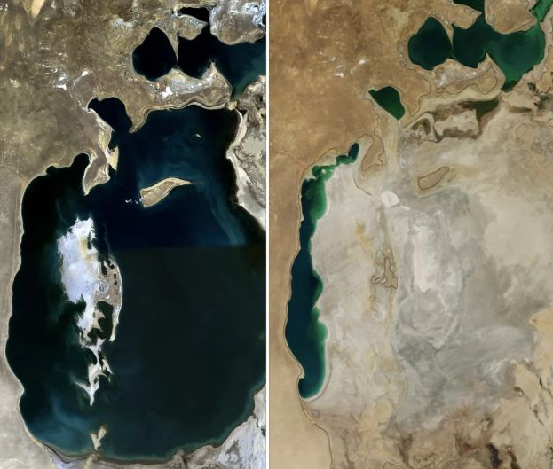 © NASA (слева - Аральское море в 1989 году, справа - в 2014-ом)